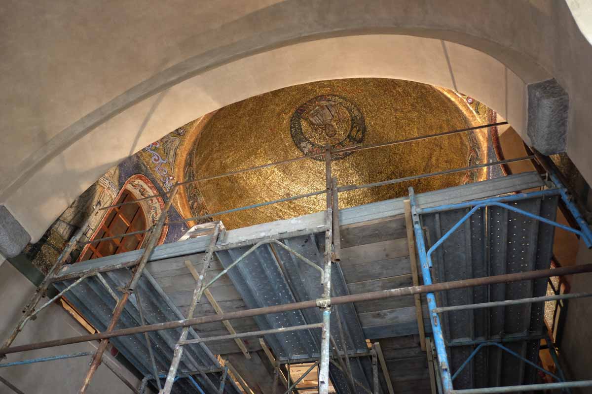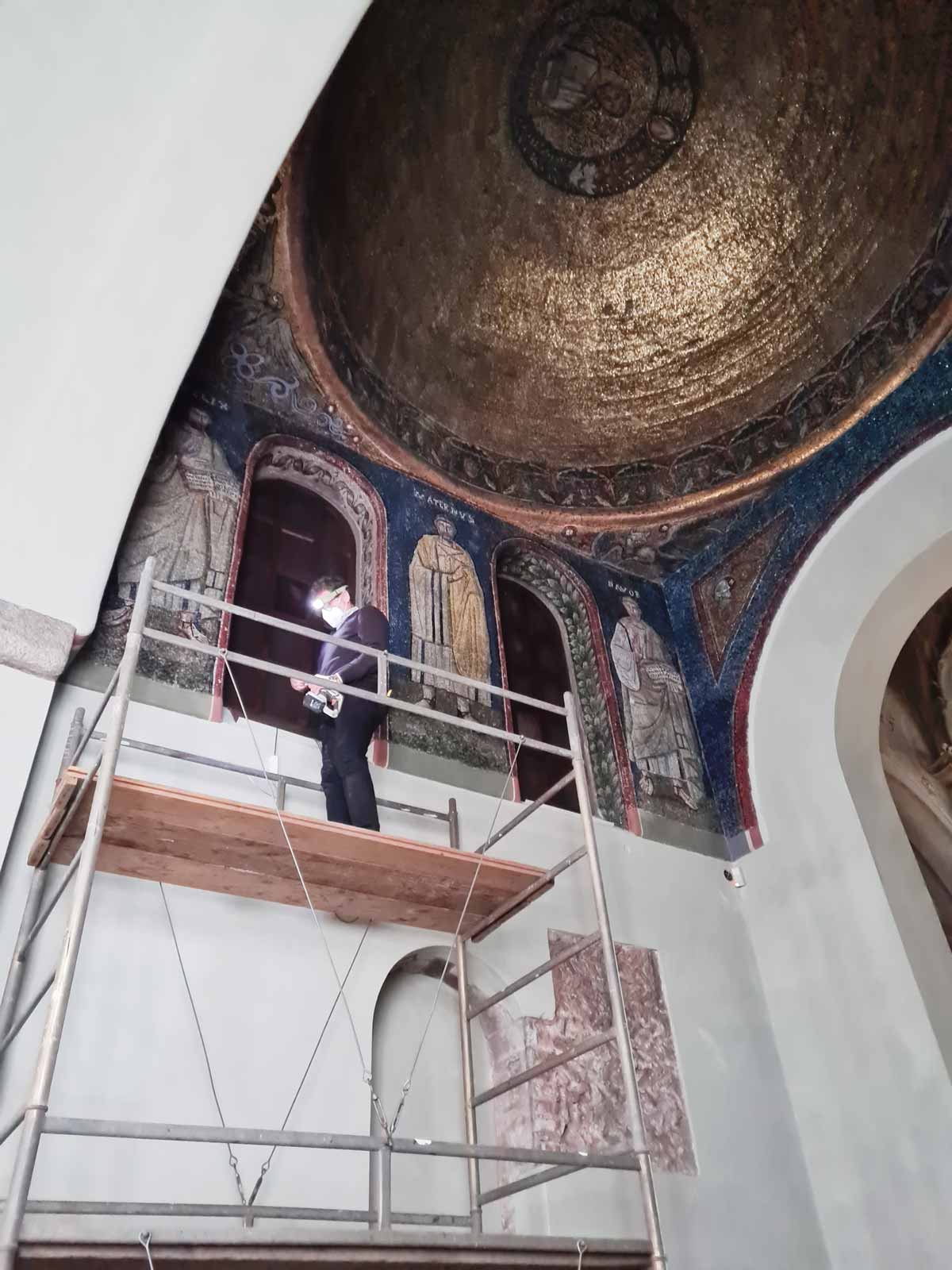 • il restauro e risanamento conservativo dei mosaici paleocristiani della volta e delle pareti;